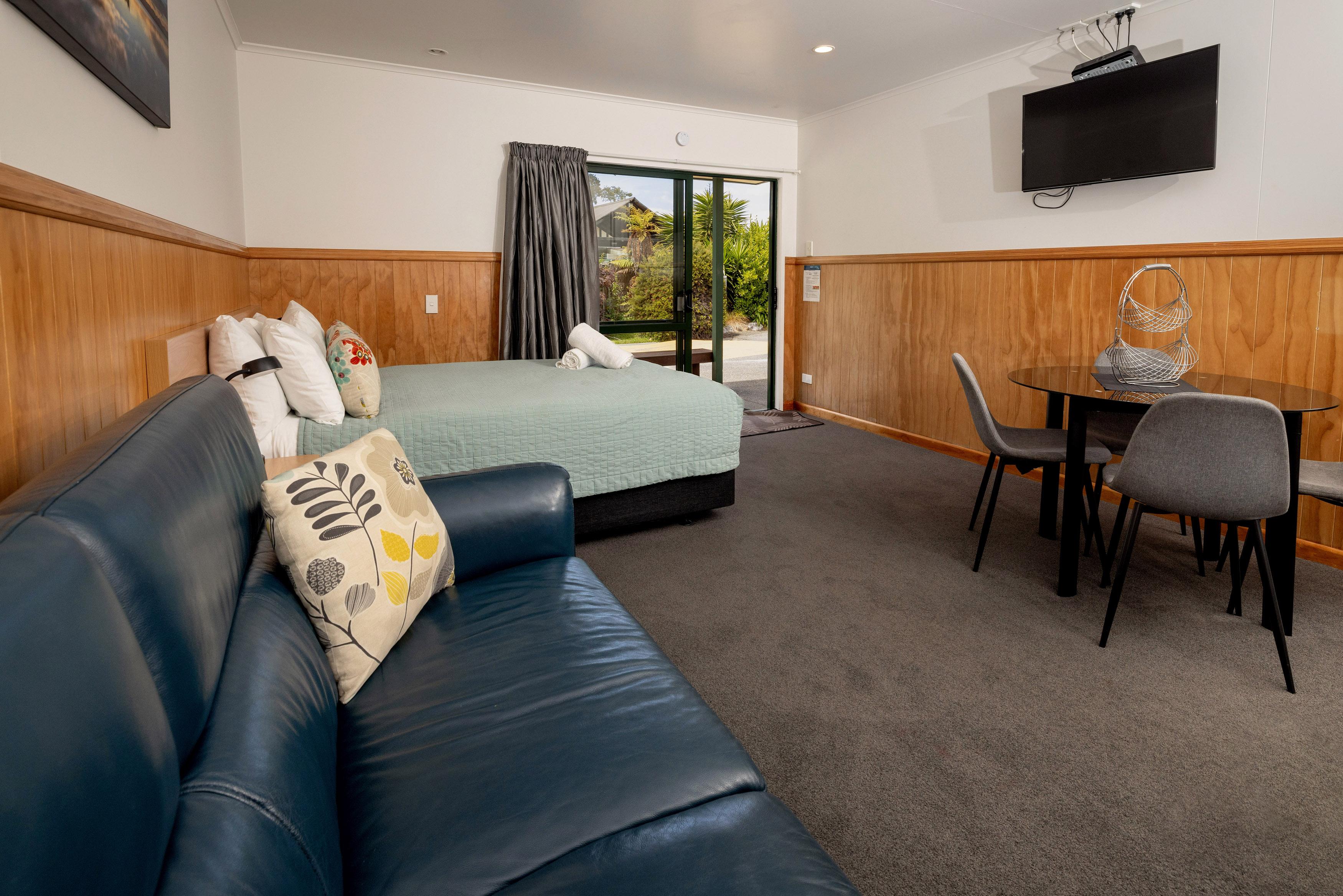 Overlooking the heated swimming pool and just steps from the spa, our spacious One Bedroom Motels are ideal for families, couples, or friends travelling together. Stay cosy in cooler months or relax with a cool drink on your private deck during summer while enjoying our park-like setting and abundant birdlife.